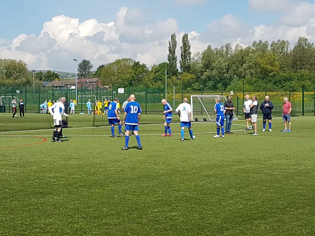 Relics:- Eddy (gk), Keith S, Tex, JoMo, Graham W, Tony G, Peter Shev. Mgr: Keiran.