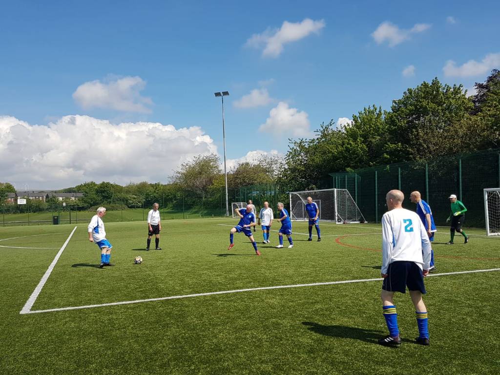 In bright sunshine (for a change), the Relics over 60’s shone with an upbeat performance against Salcom. A hat-trick for man of the match JoMo, and additional goals from Graham W and Tex (a right footer this time) contributed to the Relics 5 -2 win.