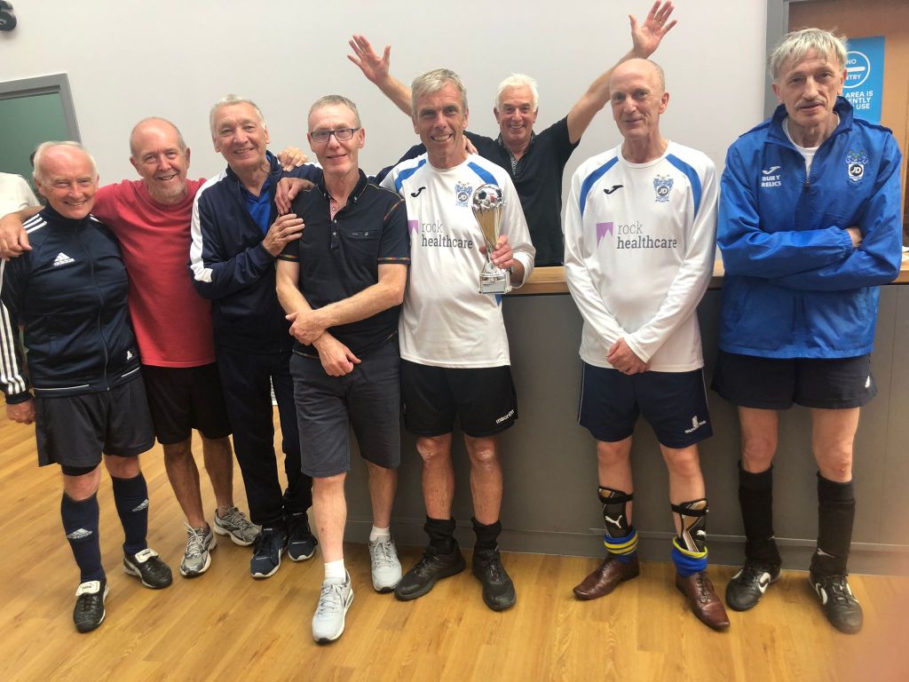 The game started well for the Relics when the Rochdale keeper strayed out of his area resulting in a penalty for the Relics which Graham W calmly slotted into the bottom corner. 1 – 0 Relics. Rochdale pulled it back to 1 – 1 with a penalty that Eddie nearly kept out. The Relics were on top throughout the game and a really well worked move from Stewart, JoMo and Graham W resulted in the Relics 2nd goal. Final score Relics 2 – Rochdale 1. which meant that he Relics qualified for the Plate semi-final coming second in the Group.