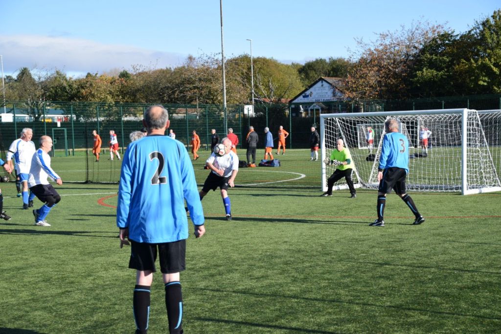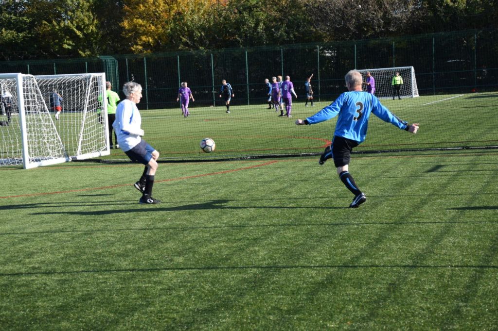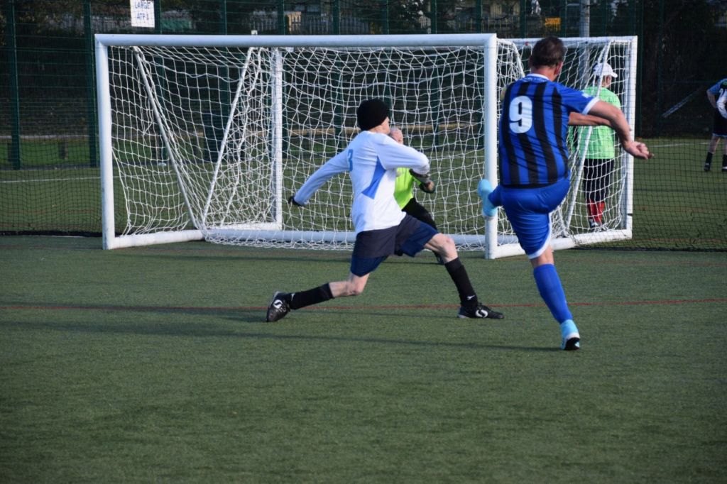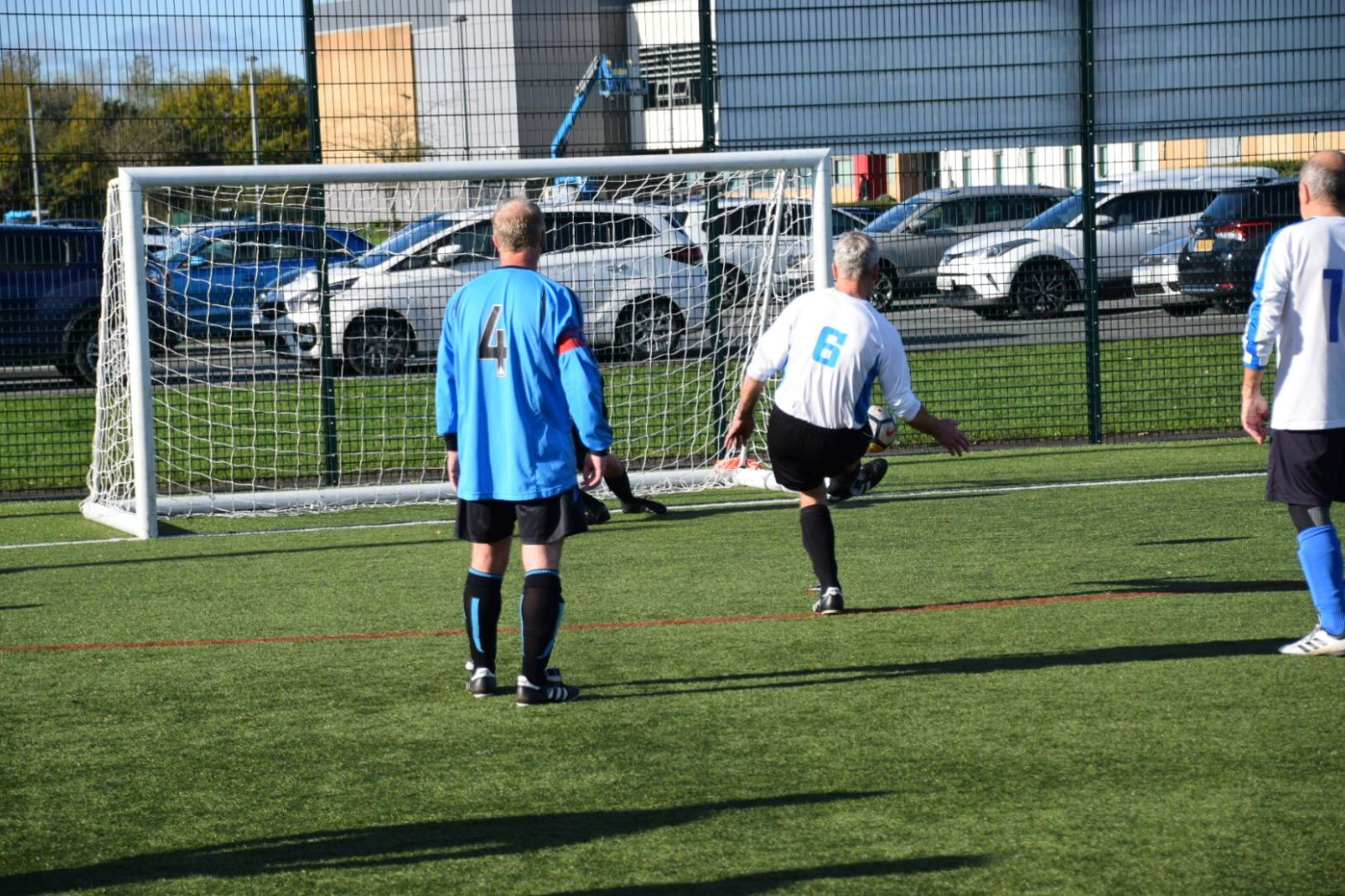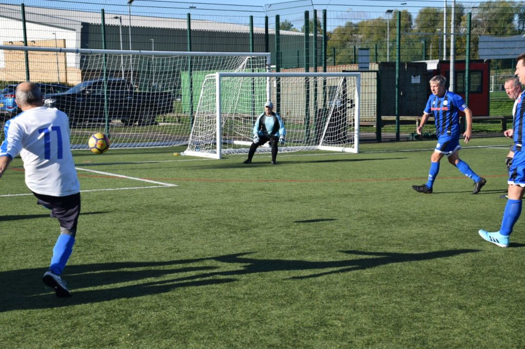 The third game was another tough one against Rochdale, there are no easy games in this league. This game was the most open game of the day. Relics were on top in the early minutes with JoMo shooting over the bar. Soon after that Andy Rich from himself free on gaol, but his thunderbolt shot cannoned off the bar. More shots from JoMo, Graham W, and Stewart were saved by the Rochdale keeper. Rochdale then started a period of pressure resulting in four shots which were off target. The pressure paid off for Rochdale when a Bury foul on the edge of the box was deemed by the Ref to be stopping a goal scoring opportunity, the resultant penalty gave Gaz no chance and Rochdale went 1 – 0 up with just a few minutes left to play. The Relics when straight on the offences to try to get the equaliser with a shot from Stewart being turned for a corner. In the last minute a great ball from Graham W found JoMo on the edge of the box with his back to goal, a superb turn and left footed shot beat the keeper. a well deserved equaliser for the Relics.