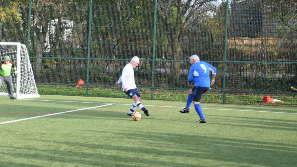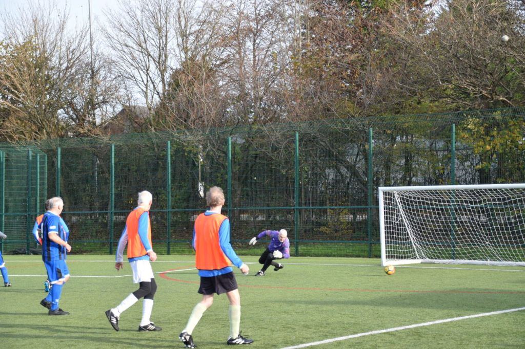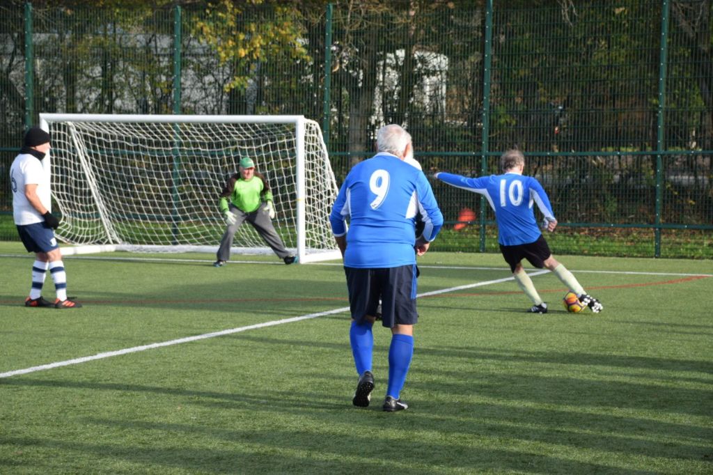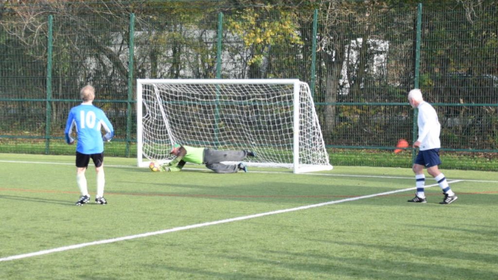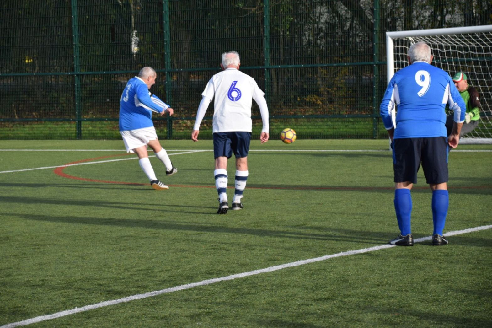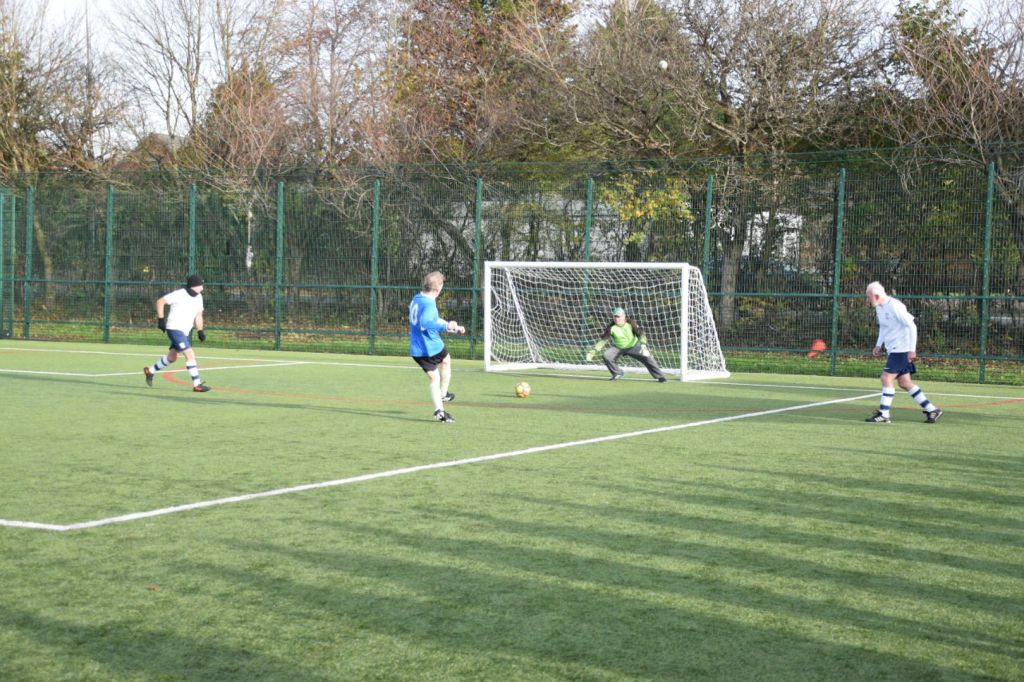 The first game against Blackpool started brightly for the Relics with a Blackpool player wandering into his own penalty area giving the Relics an early penalty. John W stepped up confidently, his shot down to the goalkeepers left sent the keeper the wrong way, but somehow he managed to stick out his leg to keep the spot kick out. The Blackpool sigh of relief could be felt all across the ground, but it wasn’t to last. Shortly afterwards John W got the ball in a central position and a quick turn and pass to Jerry in the inside left position on the edge of the box, who fired a right foot shot with the outside of his foot into the keepers bottom left hand corner of the goal. The keeper had no chance with Jerry’s unorthodox strike,