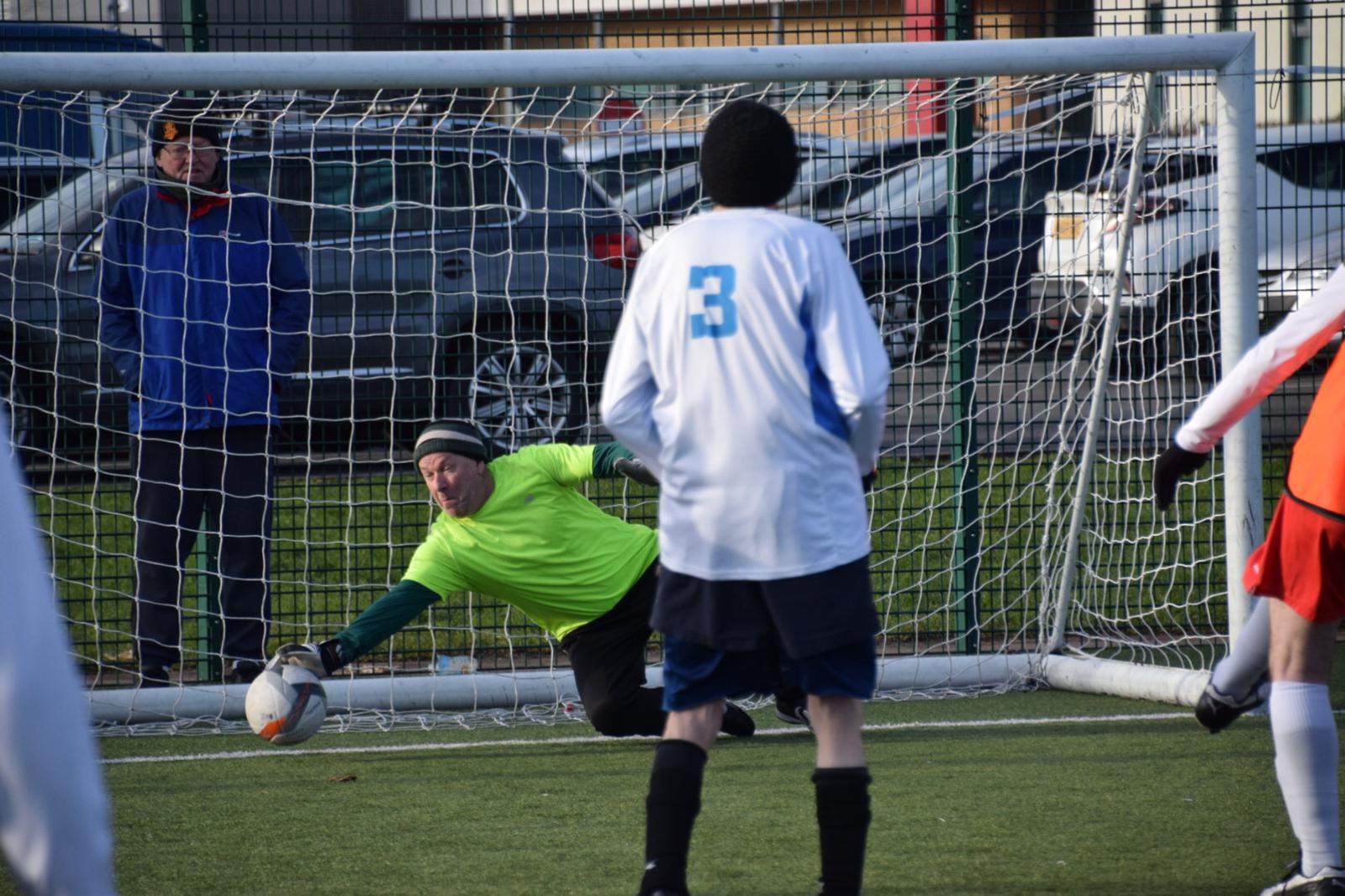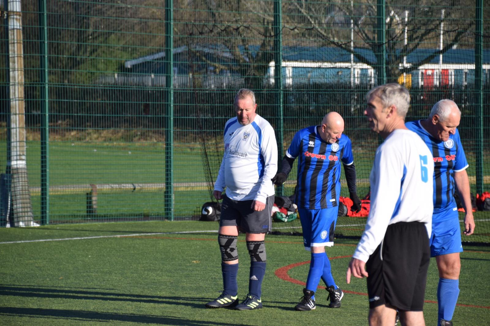 Bury Relics vs. Rochdale. Bury did not start this game well and were making some stray passes that the opposition were picking up. Then a move set up a Rochdale player for a shot, but he was just too late and had to travel into the area to get a shot away; the ref spotted it and Relics had the ball. In the next passage of play, Graham made a good tackle to intercept. Then Bury put some passes together and Andy built a chance for Graham, who took a shot from some distance out, which their keeper had time to get down and save. Rochdale then went on the attack, and Peter made a great tackle to prevent a shot. A bit of trench warfare was developing in midfield, when Stewart was body checked and sent tumbling; thankfully all was OK to resume. Graham had a shot, and then a good tackle from Stewart as play continued. Subsequently, out of the blue, there was a Rochdale counter attack down the left hand side. Unknown to the Relics, there was a rogue Rochdale player all on his own on the right, who was picked out by the left winger; in space and on the run he managed to toe bung the ball past Gary for 1 – 0 to Rochdale. This could have quickly turned into 2 – 0 on Rochdale’s next attack but for a salmon like leap by Gary and a superb fingertip save. The Relics had one big chance near the end, with Stewart clean through on goal; he did nothing wrong as his shot was arrowing towards the back of the net, when a UFO like goalkeeper flew out of nowhere and saved the ball. In truth it was a great save. Final Score, Relics 0 – Rochdale 1.