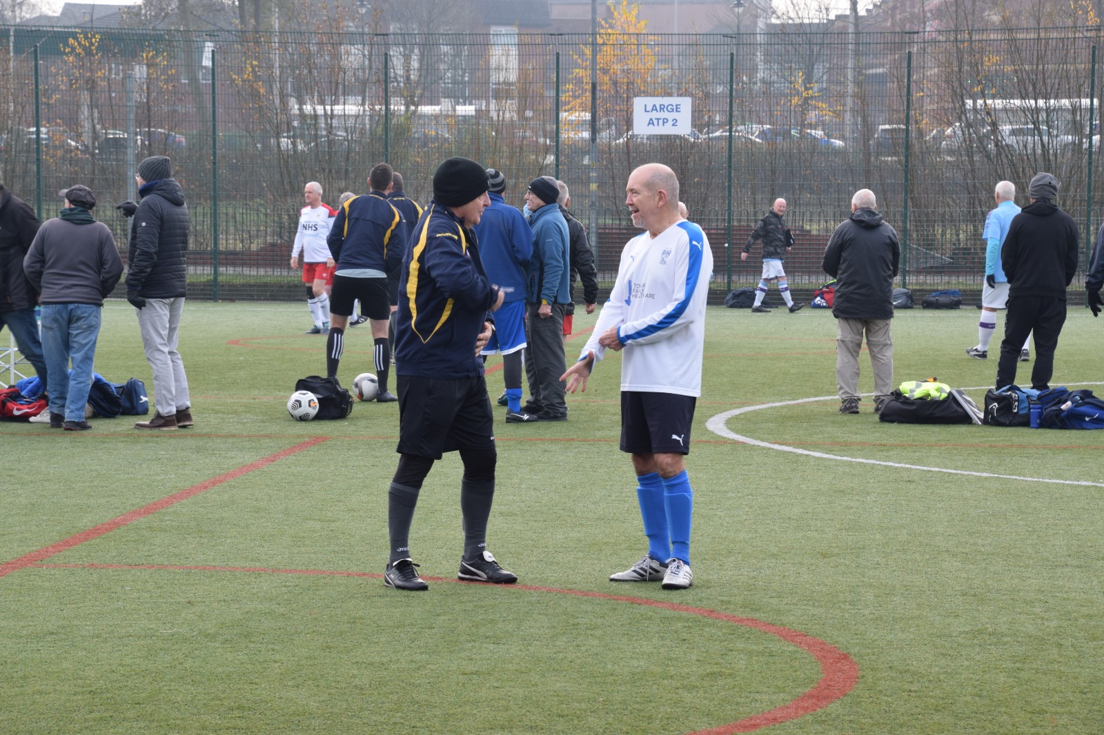 It’s amazing, the road to Heywood sports centre was clear for a change, with shiny new tarmac. As I approached, I could hear the faint sounds of the Eye of the Tiger Rocky Theme being played in someone’s car. That about summed up the mood of the Bury Relic players and supporters, for the final set of fixture had come around that could bring glory once again to the mighty Relics. Like last week with the over 60s, a single goal was the difference, but this time it was not about relegation but winning the division 1 title. The Relics were in 2nd place behind Manchester Corinthians. The Relics players, management and supporters all knew that only a perfect set of results and a high quality performance could deliver them the title. This was no easy task and first up were Salcom 65’s.