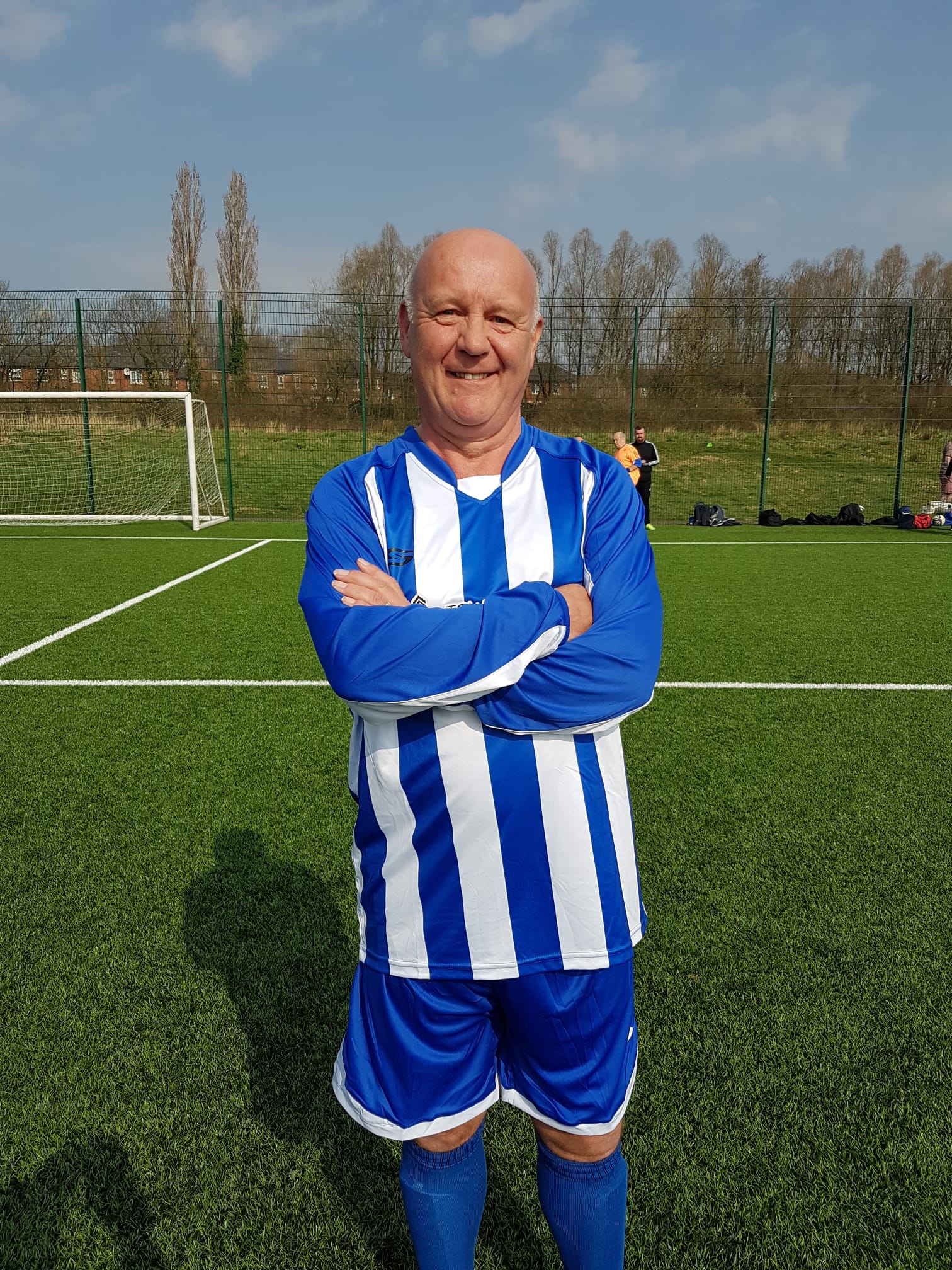 What a glorious and sun-shining day that greeted the inaugural over 60’s Stripes first ever set of fixtures. In the bright light, the team looked like it had walked out of a Persil advert, with their new brilliant white and blue striped gleaming kits. The Relics tigers roared as the starting whistle blew; the first game was against the Ribble. Relics started brightly, with a couple of passes and then a shot from Andy, that whistled just past the right-hand post. Then, from a subsequent interception by John H, it was Keith H’s turn to have a shot, that was low to the left but the keeper got down to save it. Then there was an exquisite piece of skill by Andy who managed to push the ball to the side, and with the other foot, push the ball beyond the defender, simultaneously gliding past him. Unfortunately, the subsequent pass was intercepted. The Relics were now doing the better, executing some good passing and moving, with Alan being the hub of a lot of the play. This led to a nice turn and shot from Nev, but the shot was not powerful enough to beat their keeper. Both John H and Alan were playing well at the back, starting off moves following Ribble attacks. There was one good attack, when their number seven did a nice dribble from the Ribble, and had a good shot but the accuracy was lacking as it went wide. A foray forward by the Relics led to an Alan shot, which was heading straight into the top corner but alas, the keeper managed to get to it. Beep! Half time. At the break, John H had to come off as he was without his bobble hat, like Samson; to be fair, he had been working so hard, he needed a well-earned breather. Mark came on and this led to a team restructuring, which moved Nev to the back and Mark on the left. Despite the hasty changes, the Relics were still playing well, and Nev had a shot that went high. However, on the subsequent Ribble attack, Nev, while making a good challenge, mistakenly pressed his hyperspace button (does anyone remember the arcade game Defender?) and transported himself into the penalty area. Obviously, he was so concentrated on getting a good challenge in, that he forgot where he was and it was a penalty to the Ribble. The penalty was well taken, low to the keepers left; Eddie had little chance of saving it. 1 – 0 to the Ribble. The deficit made the Relics press the Ribble, and gave the Relics lots of possession, which led to repeated fouls by Ribble. Soon enough, it was 4 fouls and a penalty to the Relics. Andy stepped up and hit a good penalty, high to the keepers right to make it a 1 – 1 score line. Two more events of note in this game were: Watford Mark made a good interception and took a quick shot but was wide, and then was a great tracking back and tackle by Keith H, who made an important interception, probably saving a goal. This was a tough game that ended in a draw but the Stripy Relics had played well.