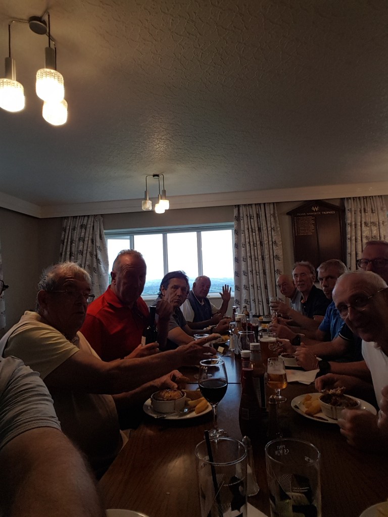 After the game, the cool beer tasted better than usual and the food was phenomenal; steak pie and chips, followed by delicious apple pie and custard. It was an enjoyable day out. Again, a big thank you to John W and Tony P for organising the day and thanks to the staff at the awesome Walmersley Golf Club for their warm hospitality and tasty food.