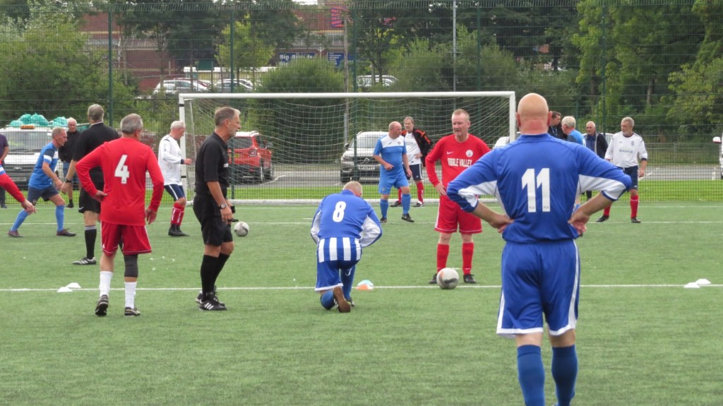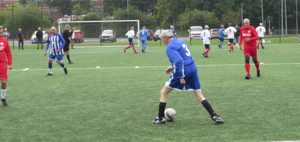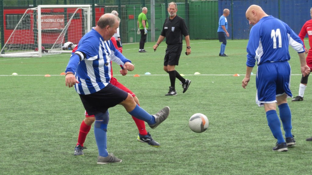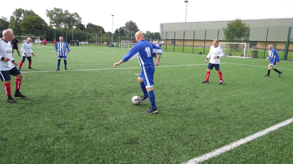 Both teams have a blue kit, so Bury put on Orange Bibs, to visually differentiate the teams. I made the very funny joke that a Bib was very appropriate for Keith B 😊. Not to be outdone by the superb whit and humour, Nikon Nev then announced this should be called a “Lancashire Hot Pot” of a derby. OK, so it was. The Relics get the game underway, with a good number of passes, until Bolton tackle the ball out of play. Keith B plays a nice kick-in, finds Mark T and he plays in Wayne for a shot, who hits it low and hard, but the keeper makes the save. Then disaster strikes, as their #7 scores a quality goal, the finish that is. From a Relics perspective, it was poor as possession was lost in midfield and their #7 had enough space, about 5 yards outside the area, to be unchallenged in the shot. However, at this distance, only a quality hit would beat Bob, and it was a great strike, low and across the goal, just out of reach of Bob’s agile dive and into the far corner. A great goal for Bolton, who were now ahead 1-0. Then a chance for the Relics, Keith B moves into space by side-stepping his marker and takes a snap shot that just goes wide. A nice effort. Then it’s the Relics knocking on the door again; this time Keith B receives the ball from a smart Pete S pass, and he crosses to Keith H, who makes half a yard of space, to hit a shot that just goes wide of the left-hand post. Another good Relics effort. Now a trench warfare develops between both teams, and they both try and deny either team time and space, with quick closing down, with a couple of free-kicks won by ricochets that when overhead. Bolton were beginning to dominate this battle, and were making some long-range powerful shots. These were potentially dangerous shots, but luckily not on target. Relics players were putting their bodies on the line, by blocking Bolton shots. One excellent block was executed by Pete S, who swiftly closed down the striker, who was set up to shoot from a Bolton free-kick. Then there came the second disaster of the game. At first, I thought Bob had played superbly, by denying two shots on goal by Bolton. Bob bravely put his body in the way of a howitzer of a shot, that rebounded out for the striker to follow up. He did so, but all of a sudden, the Ref blew his whistle as he had spotted a Relics foot had strayed into the area; it was a penalty to Bolton. The #7 striker stepped up and hit the penalty pretty centrally, to see the ball ripple the net as Bob had gambled and dived to his right. There was good power on the penalty, so Bob had little chance and it was 2-0 to Bolton. From the centre, Relics win a kick-in, which Mark T takes to perfection, playing the ball over to Keith B, who takes a pace forward and hits it firs time. Unfortunately, the connection is not clean and the ball spins up and harmlessly away. On another day, that could have been a great goal, and the set up by Mark was quick and incisive, and Keith had moved and gained a bit of space to smartly finish. Unlucky, and concluded the first half. Bolton try and catch the Relics out, with a shot from the second half start, but it’s well blocked. Then from the resulting play, Bob makes a good save from their striker, who hits a hard shot that Bob gets behind. Then a good bit of play by Keith H, who gets the ball and cleverly bamboozles and turns away from the defender to get a shot away but it is saved and out for a corner. Keith B then does a good bit of play, by anticipating a Bolton pass out of defence and intercepting it. There appears a chance to shoot but he elects to pass and the opportunity fizzles out. However, it was an alert interception. Then it’s a hard shot from Bolton in midfield, that Bob nearly breaks his wrist on, and the save takes it out for a corner to Bolton. The attack breaks down when Mark T makes a tackle that normally is not allowed, by poking the ball from between an opponents legs. This gives Mark a chance to shoot, which he does and wins a corner off the keepers save. From then on, Bolton manage the game by passing around and by minimizing any Bury possession. The games finishes in a 2-0 loss.