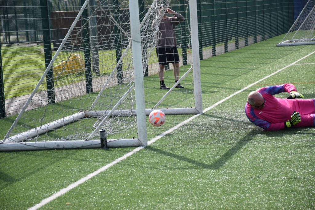 Today’s games were full of incident, with John W having a hand (or foot) in all 3 goals scored/conceded. He drove home to put Relics one up versus Blackpool, before putting a foot print in the area to give Blackpool a pen. In the next game John W’s tenacity and vision provided a good assist for John M to score the winner against Rochdale. Then he saw red for disagreeing with the Ref. Added to that was City’s phantom goal that never was; who would have thought that goal line technology could be needed for Walking Football? Then, there was the tumbleweed moment when nearly all of time stood still with the exception of a Corinthians Striker. He fired past Eddy to score, only to learn that the goal would not ultimately count (probably a bit lucky that).