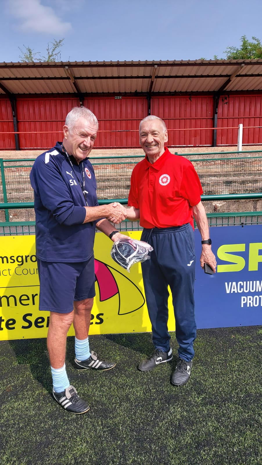 Relics over 70’s skipper, Tex O’Rourke, picked up his two latest Caps at the England Walking Football Community (EWFC) training session at Redditch United over the weekend.