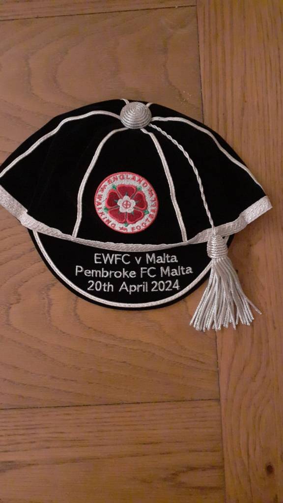 The cover photo above shows Tex being presented with his two caps from England (EWFC) Manager Simon Atherford.