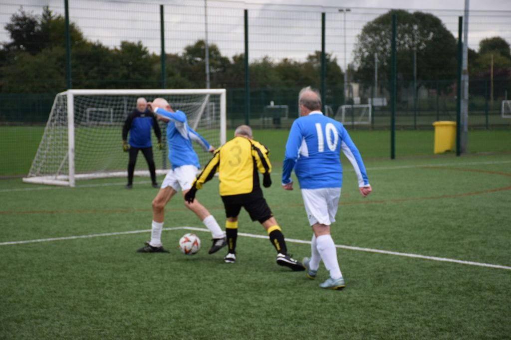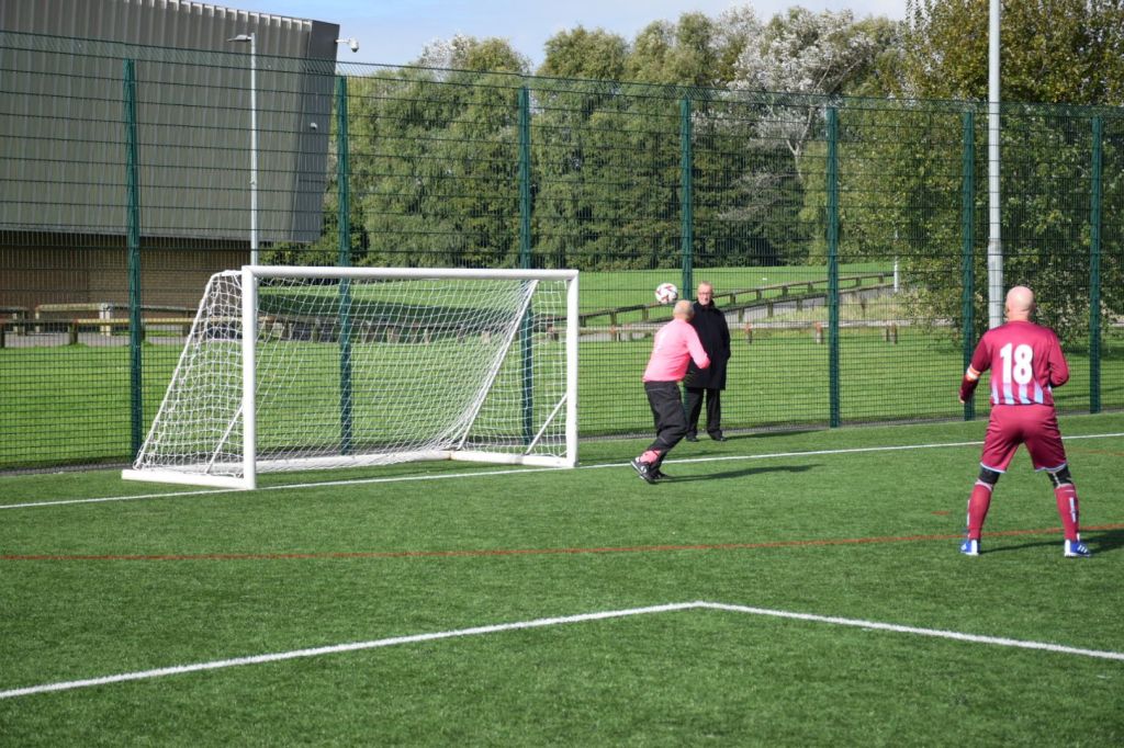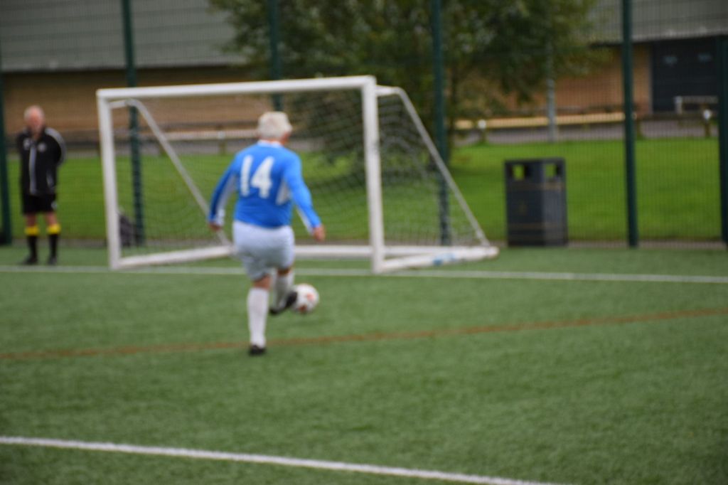 Against Burnley, Bury were the dominant side, in control and having around 70 percent of possession. The 2 goals Bury scored were fabulous, with the first coming from 81 years old Bob. He could have been 61, when the ball arrived at his feet, around 8 yards outside of the area, to the right-hand side. There were players positioned all around him, but he saw a path to goal, and hit a sumptuous low and hard shot that glided across the AstroTurf, to nestle into the bottom corner of the Burnley net. Everyone was shocked as it was a long way out. The keeper was probably unsighted but he would not have saved it anyway, it was so precise. A fabulous goal, that would be nominated for goal of the month, if the Manchester Walking Football League had it. The second goal was nearly as good, coming from Peter T. He was always on the move, looking to find space to receive the ball. On one such move, he was in space, in a shootable position; he took aim and fired high, past a startled keeper, A quality finish from someone new to playing league walking football for Relics. The 2 excellent goals put Relics in a commanding position. However, Burnley kept plugging away and had several half chances by some good passing moves and enthusiastic forward play. There was to be some more drama though, as Bury ended up giving away 4 fouls and it was a penalty to Burnley. The spaghetti western style stand-off between striker and goalkeeper ensued, with Eddy’s stare coming out on top. The Striker blinked first and smashed his penalty shot against the cross-bar. I was not completely sure, but some nanograms of goalkeeper glove fibres were later recovered from the football, confirming Eddy’s claim that he got his fingertips on the ball, to divert it onto the cross-bar. In that case, was a great save!. In summary, Bury managed to keep a clean sheet and claim a good victory.