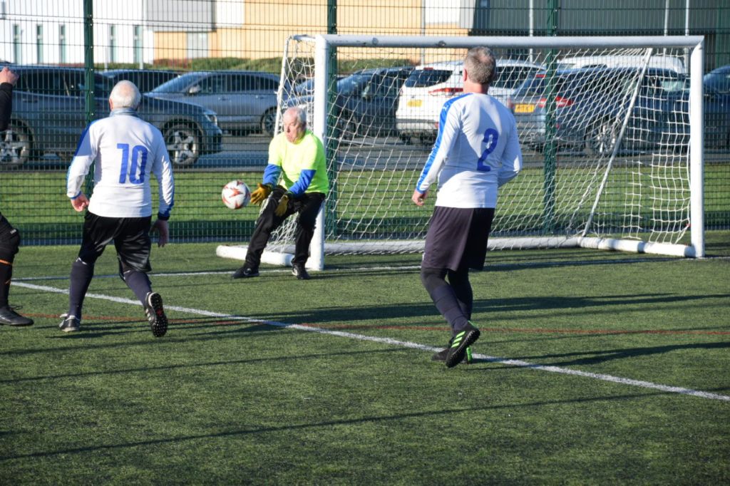 Bury Relics Over 65’s concluded their Greater Manchester Division 1 Walking Football Autumn league campaign in match week 4 which had been postponed pre-Xmas due to bad weather. A squad of 8 were selected of Gaz (GK), Kevin, Pete Shev, Alan, Dave Luk, Ian McCann, Paul and Graham. Pat was Manager and numerous supporters were in attendance on a dry day which saw us begin handily placed second in the league with Wakefield running away at the top.