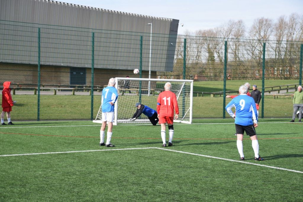 Next up were Tameside with Ken and Ray starting on the bench. They had the first shot which Eddy saved with his feet then we started to play some good football. Tex shot wide and then JoMo had a good shot on the turn after a 6 pass move. Although we had good possession, Tameside were always dangerous on the break and a good Eddy diving save low to his right was needed to keep it all square. We kept pressing, with Gerry having a shot blocked for a corner and then at the death JoMo made a great interception, turned and shot narrowly past the post. A 0-0 draw in which we had the majority of the play but didn’t test the keeper with our shots although they made Eddy work hard twice from a lot less of the ball.