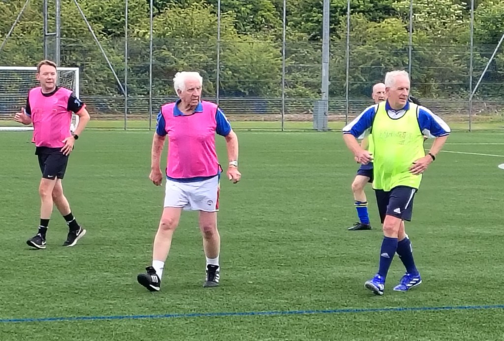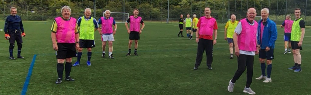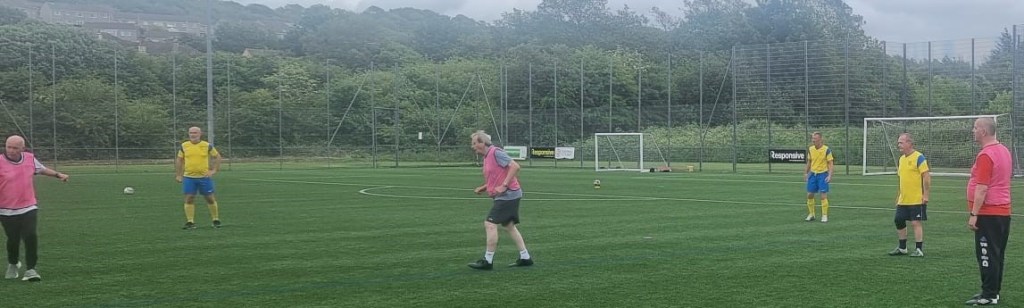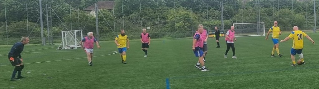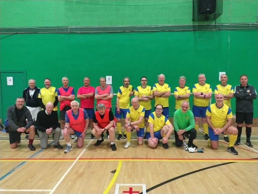 A man called Richard turned up one Tuesday at the Castle for game of walking football and asked if Bury Community Football would be interested in a friendly with some players from Whitehaven. So, on the 26th of February 2025 we played a 5-team league format friendly at the Castle. The league consisted 5 teams, with 3x coming from Bury. Bury Black Bibs managed to top the league after winning all games, but it was very close, with Whitehaven’s top team, who won all except the Black Bibs, just being beaten by a single goal. After, we went to the Jewel in the Crown for tea. It was a very good day of football, played in a friendly manner; it was great to meet the Whitehaven lads. Picture shows the team photo from the Bury Tournament.