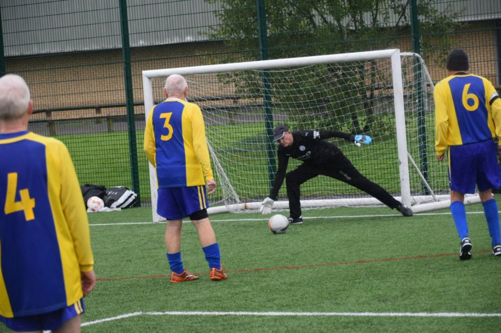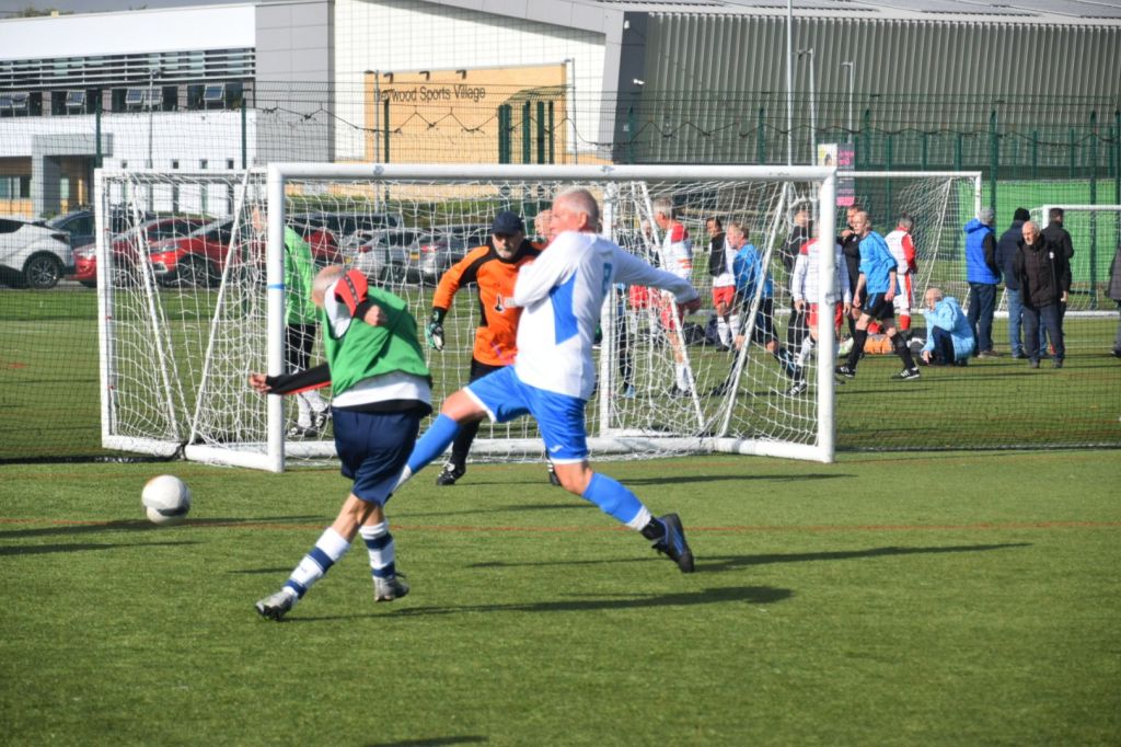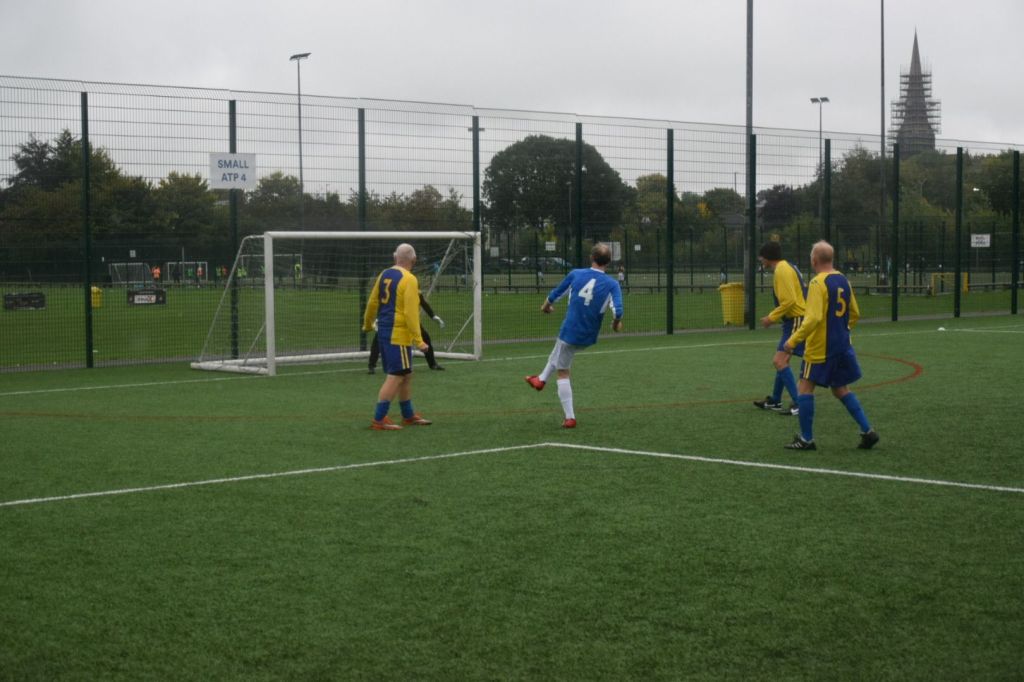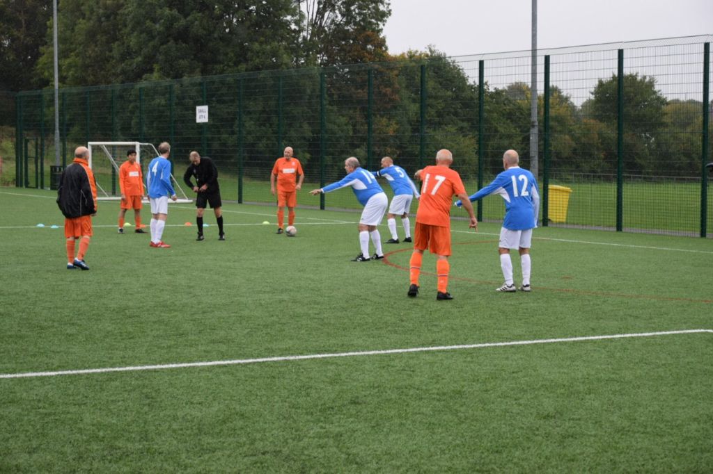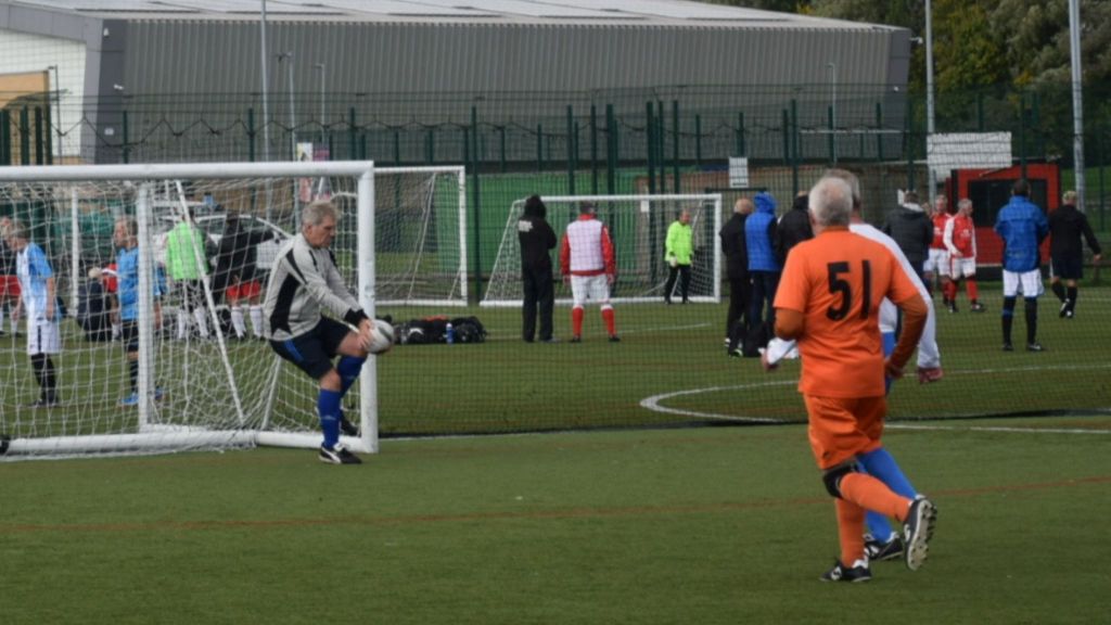The first game was against Bolton, who looked to be sporting a new bright kit that probably can be seen all the way from Mars. The starting formation was as follows: Graham up-front, Gordon and Ian in the middle, Keith S (The Wall) and Wayne at the back, and Steady Eddy in goal. Duracell Alan as a sub. The no-nonsense Ref gets the first fixture of Bolton underway, and quickly there is an attack from Bolton down the left-hand side, which results in a shot across Eddy’s goal, but wide. Then it’s a good bit of skill by Keith S, on Bury’s left, to skip past his marker and play the ball inside to Graham. Good play but the pass was just too high, and a free-kick. Then, as time elapses, Bolton turn up the heat and start to pressure the Relics but without making any clear shooting chances. This was because the Relics were stout and resolute, not giving Bolton players any opportunity to shoot or space. This culminates in a good block from Wayne, and a head-high free-kick. Bolton play the ball forward to their #10, who for the first time, makes a good turn and gains half a yard; the shot is fortunately wide. Then the Relics have a spell of possession, and a trip on Graham brings a free-kick. The free-kick is played to Graham, who wastes no time in turning and shooting. The ball is heading towards goal, bouncing several times on the way, but it is just millimetres wide past the post. Their keeper was nowhere near covering that, it would have been a great goal. Then, good play again by the Relics, The Wall makes a good interception, and plays the ball to Ian, who then plays a one-two with Graham. However, the return pass to Ian is just too far out of his reach and the ball evades Ian and out for a kick-in. Bolton go back on the attack, and that produces some great defensive work by Wayne, who sticks to their #10 as if he is his shadow. He tries to get away from Wayne, by traversing across the area but Wayne sticks with him, and there is no chance of a shot because of Wayne’s determination. Then, SOLID by the Wall again, blocking a powerful Bolton shot. The ball is played back in to their #10, who Wayne is marshalling again, and #10 tries to back Wayne into the area. Luckily, the Ref is alert to it and gives Relics possession. Then it’s the Relics turn to attack, with passes from Ian to Gordon, then to Graham, and then a shot. On this occasion, the shot is deflected for a kick-in. From the kick-in, Ian receives the ball with his back to goal, on the left, and swivels at pace to quickly shoot. The keeper reacts quickly enough to make a save but it was quick thinking and a good effort by Ian. Bolton reply by getting the ball forward to their #10, who gets a shot away but Eddy is there to save it. Their #10 is a good outlet for Bolton, and he’s having a good battle with Wayne, who again makes a block on a #10 shot. The game concludes with a 0 – 0 draw. This was the first game, so both teams were fresh and cancelled each other out a bit. Both had some half chances but nobody had an absolute clear-cut chance to score. Bolton are a fit and skilled team, so this was a good result for the Relics, who played well themselves.